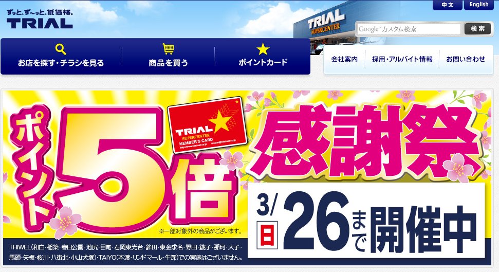 Trialさんのポイント 5倍 感謝祭 は明日まで 千葉ニューといろいろ
